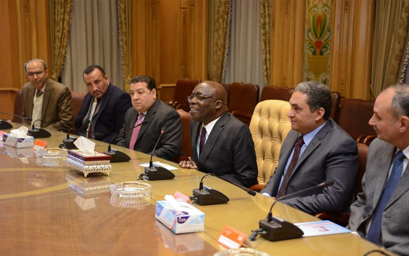 بحث وزير الدولة للإنتاج الحربي الدكتور محمد سعيد العصار مع مستشار رئيس جمهورية السنغال عبد العزيز مباي، بحضور رئيس مجلس إدارة شركة (فالكون)، سبل التعاون المشترك بين شركات وزارة الإنتاج الحربي والشركات المماثلة لها في دولة السنغال في مجالات التصنيع المختلفة.