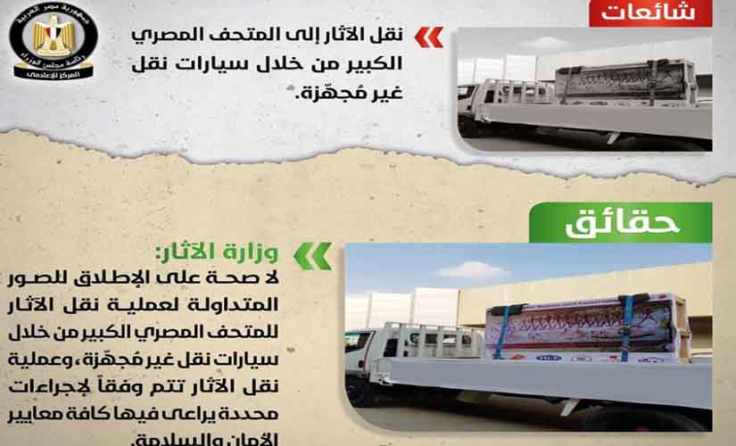 7- نقل الآثار الى المتحف المصري الكبير من خلال سيارات نقل غير مجهزة