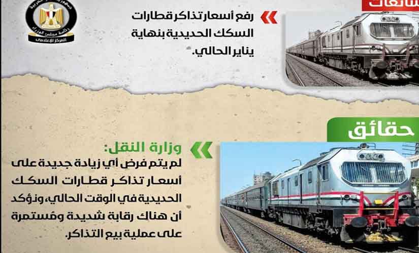 بالإنفوجراف.. "الوزراء" ينفي 7 شائعات أبرزها رفع أسعار تذاكر القطارات