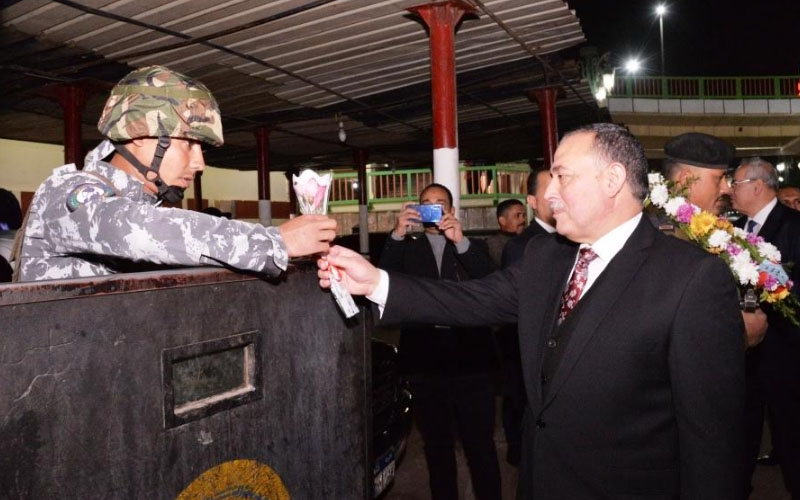 توزيع باقات الورود على قوات الشرطة والجيش بأسيوط