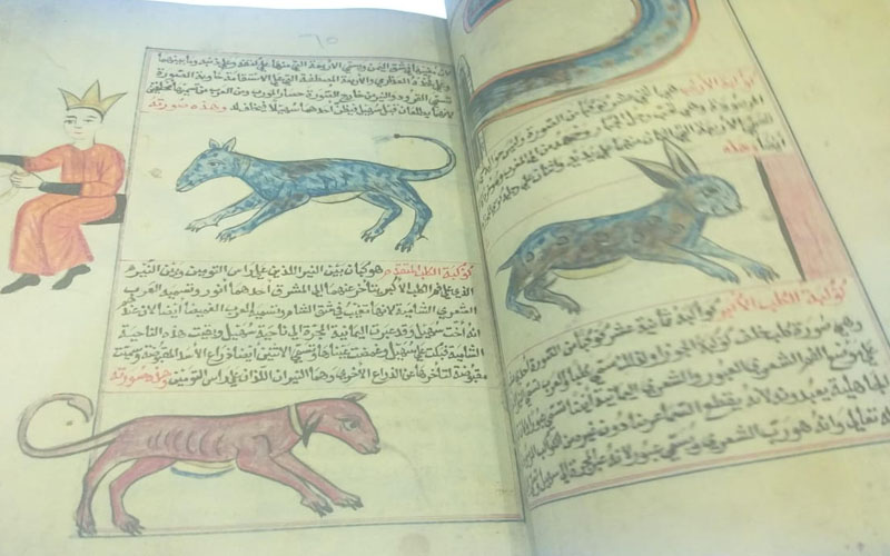 كما يعرض متحف المخطوطات مخطوطة «عجائب المخلوقات وغرائب الموجودات» للقزويني، وأكثر ما يميز هذه المخطوطة مجموعة من الرسوم الملونة، ووضوح هذه الألوان رغم مرور مئات السنين على رسمها، فضلا عما تعنيه هذه المخطوطة من استخدام الإنسان المسلم للصور وإيمانه بأهميتها في إيصال المعلومات وتوثيقها وتأكيدها في ذهن القارئ منذ قديم السنين.