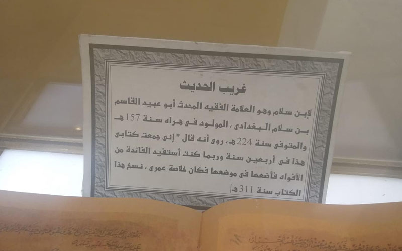 ومن أبرز هذه المخطوطات؛ مخطوطة "غريب الحديث" لأبي عبيدة القاسم، وهي أقدم مخطوطة في مكتبة الأزهر حيث يرجع تاريخ نسخها إلى العام ٣١١ هجري، كما يوجد «مصحف شريف» مرسوم باليد، وفي أولى صفحاته توجد مجموعة من المآذن بنقش يمكن قراءته من اليمين ومن اليسار «لا إله إلا الله محمد رسول الله»، وقد رسم هذا المصحف الرسام على لطفي سنة ١٣١٣ هجرية، وأكثر ما يميز هذه المصحف أن راسمه جمع القرآن الكريم في ١٩ صفحة فقط.