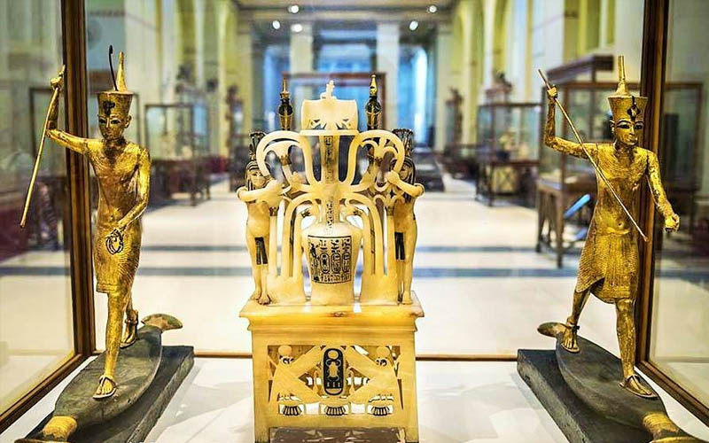 نشرت الصفحة الرسمية لسفارة مصر في البانيا على موقع التواصل الاجتماعي فيس بوك، صوراً لإحدى القاعات المخصصة لكنوز الملك توت عنخ أمون بالمتحف المصري الكبير.