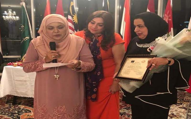 كما قامت بتكريم السفير الكويتي عميد السلك الدبلوماسي العربي في ماليزيا على دعمه لزوجات السفراء العرب ومنحه لهم شهادات تقدير لكل حرم سفير، شاركت بهذا العمل الخيري، وتكريم جميع زوجات السفراء العرب من مجلس السفراء العرب بماليزيا.