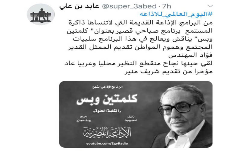 رواد "تويتر" يحتفلون باليوم العالمي للإذاعة بذكريات مصرية