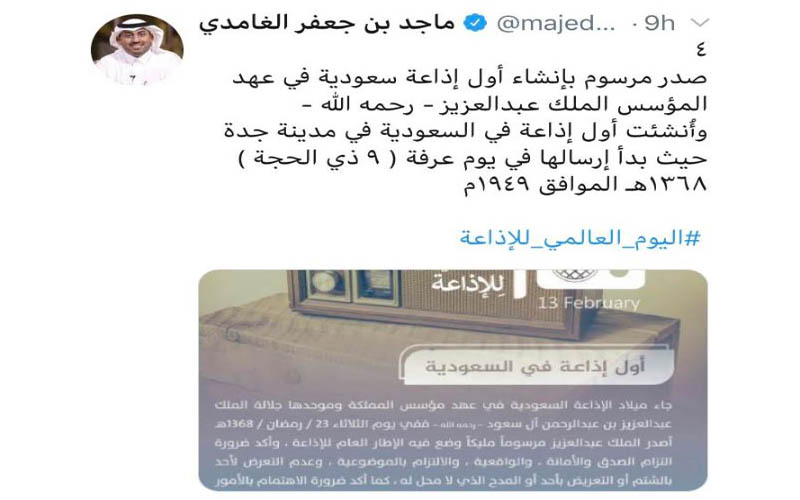 احتفل رواد موقع التواصل الاجتماعي "تويتر" باليوم العالمي للإذاعة من جميع الجنسيات العربية، والبعض نشر جزءًا من البرنامج الشهير "كلمتين وبس" للفنان الراحل فؤاد المهندس.
