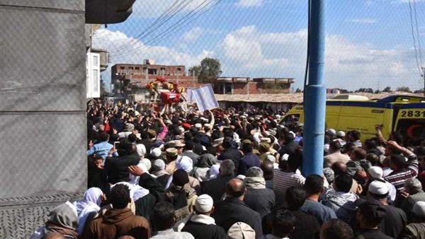 وسط هتافات الآلاف من المنددين بالإرهاب "لا إله إلا الله- الشهيد حبيب الله تقدم اللواء أركان حرب وليد حموده مساعد قائد المنطقة الشمالية العسكرية جنازة شهيد القوات المسلحة المجند محمد إبراهيم جمعة سعفان ابن قرية أبو زينة التابعة لمنشأة الخزان بمركز دمنهور، الذى استشهد متأثراً بإصابته فى الحادث الإرهابي الغاشم الذي استهدف أحد التمركزات الأمنية بمحافظة شمال سيناء.