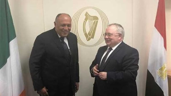 ويأتى اللقاء فى إطار زيارة شكري الحالية لأيرلندا، والتي تتزامن مع مرور 40 عاماً على تأسيس العلاقات الدبلوماسية بين البلدين.