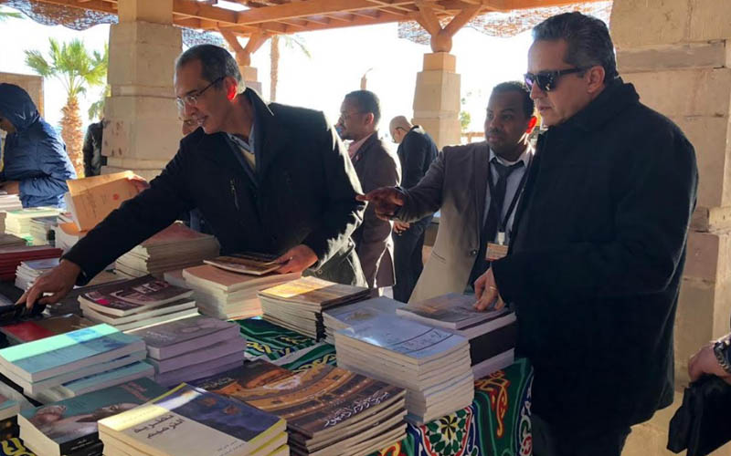 وزيرا الآثار والاتصالات ومحافظ أسوان يتفقدون معرضاً للكتب الأثرية عن ظاهرة التعامد