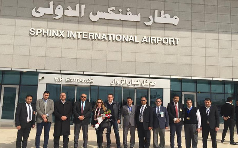 صرح الطيار طارق فوزي رئيس الشركة المصرية للمطارات "أن مطار سفنكس الدولى استقبل اليوم أول رحلة طيران دولية قادمة من مطار أثينا الدولى باليونان رقم LNXO7CY من طرازLEGACY 650 / E/ 135 وهي طائرة خاصة تحمل على متنها ٦ ركاب