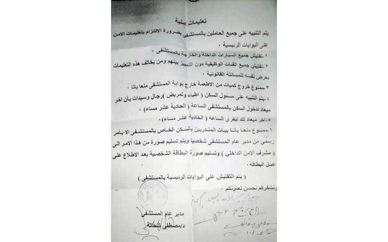 إدارة مستشفى العباسية تلغي قرار التفتيش الذاتي للعاملين عند الدخول والخروج
