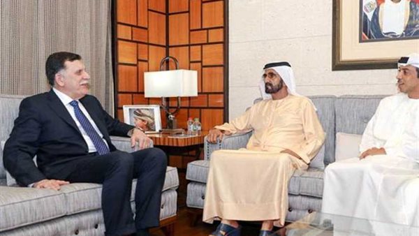 نائب رئيس الإمارات يبحث مع رئيس حكومة الوفاق في ليبيا العلاقات الثنائية
