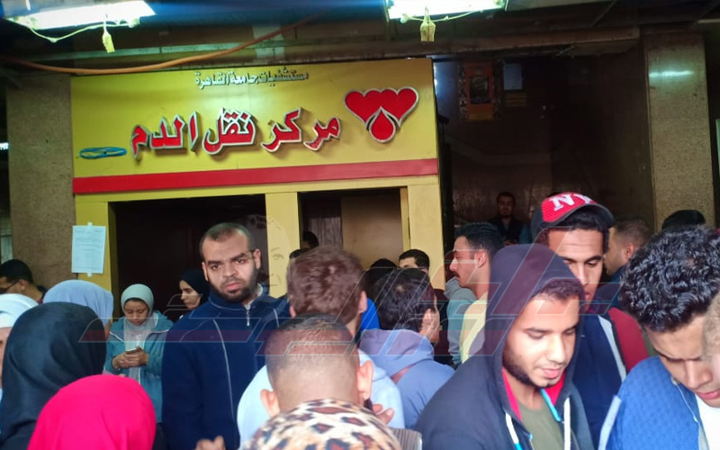 توافد المئات من المصريين، شباب ورجال ونساء، امام المستشفيات للتبرع بالدم لإنقاذ ضحايا المصابيين في حادث حريق محطة مصر الذي وقع صباح اليوم، وأسفر عن سقوط 20 قتيلاً وإصابة 43 حالة.