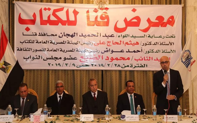 تقيم الهيئة المصرية العامة للكتاب برئاسة الدكتور هيثم الحاج علي، خلال الفترة من ٢٨ فبراير إلى ٩ مارس معرض قنا للكتاب بنادي فتيات قنا.