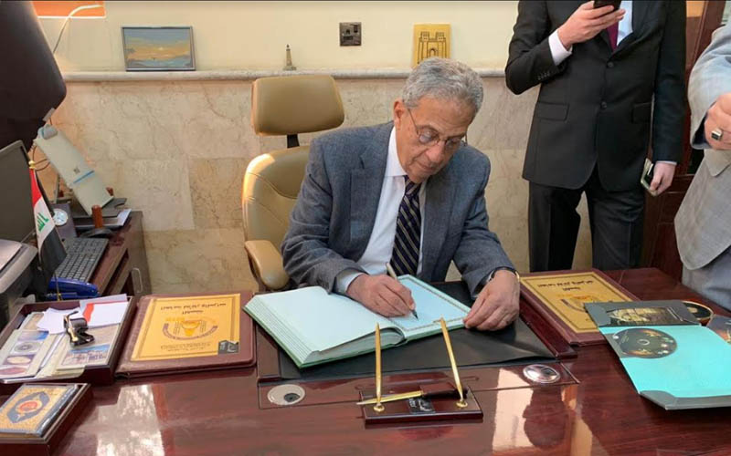 استمع الوفد إلى شرح من مسؤولي المتحف عما مر به من اعتداء عقب الغزو الأمريكي للعراق عام ٢٠٠٣ حيث نهبت وفقدت 15 ألف قطعة أثرية من مقتنيات المتحف، وقامت السلطات العراقية بالتعاون مع المجتمع الدولي باستعادة وترميم أكثر من 4 آلاف قطعة حتى الآن وأعيد افتتاح المتحف في فبراير عام ٢٠١٥ رداً على التدمير الذي قامت به داعش في متاحف وآثار الموصل وقتها.