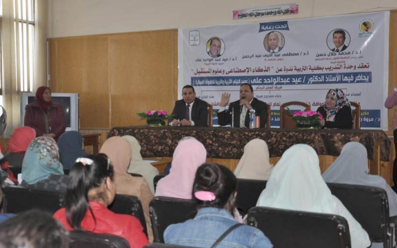 لتوضيح مفهوم الذكاء الاصطناعي وإمكانية تطبيقه في الحقل التربوي، ودور المعلم وإعداد المناهج الدراسية وفق هذا الإطار، عقدت كلية التربية جامعة المنيا ندوتها بعنوان " الذكاء الاصطناعي وعلوم المستقبل" برعاية الدكتور مصطفى عبد النبي رئيس الجامعة، والدكتور محمد جلال حسن، نائب رئيس الجامعة لشئون خدمة المجتمع وتنمية البيئة، وإشراف الدكتور عيد عبدالواحد، عميد كلية التربية.