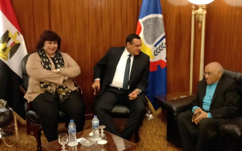 جاء ذلك خلال استقباله للدكتورة إيناس عبدالدايم بمجمع دمنهور الثقافي بحضور الدكتورة نهال بلبع نائب المحافظ، والدكتور هيثم الحاج على رئيس الهيئة المصرية العامة للكتاب والدكتور أحمد عواض رئيس هيئة قصور الثقافة وأحمد درويش رئيس إقليم غرب وسط الدلتا الثقافي والأديب يوسف القعيد والمهندس عبد الرحمن الشهاوى السكرتير العام للمحافظة وحازم الأشموني السكرتير العام المساعد ومحمد البسيوني مدير مديرية الثقافة ومحمد خميس رئيس مدينة دمنهور.