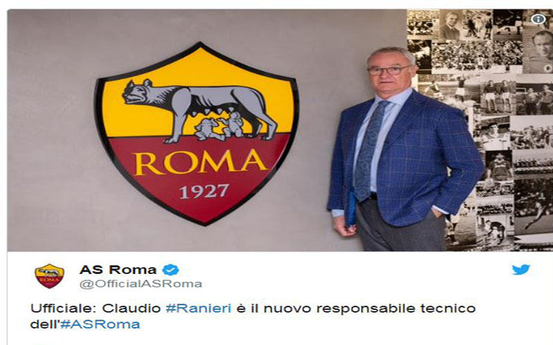 وقال روما في بيان نشره عبر موقعه: "روما سعيد بتأكيد أن كلاوديو رانييري تم تعيينه مدربا للفريق حتى الـ30 من يونيو 2019".