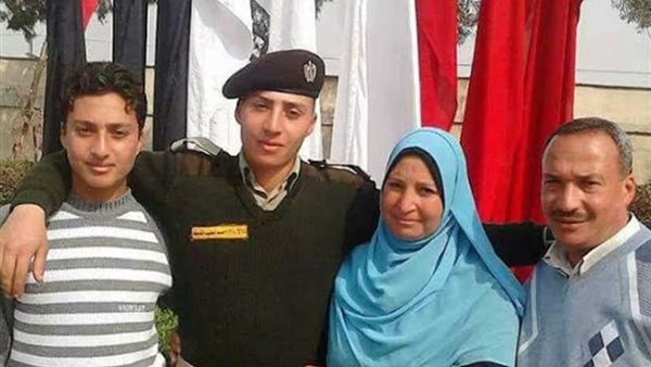 الشهيد ملازم أول أحمد محمد حسانين شاهين، 23 عامًا، ابن قرية كفر الخضرة التابعة لمركز الباجور بمحافظة المنوفية، الذي راح ضحية الهجوم الإرهابي الغادر على كمين البرث برفح، لوالدته قبل استشهاده مباشرة.