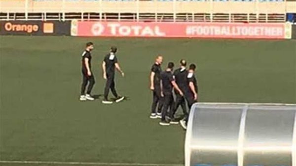 حرص الجهاز الفني للنادي الأهلي بقيادة مارتن لاسارتي المدير الفني للفريق، على النزول إلى أرضية ملعب الشهداء فور وصول الفريق إلى ملعب المباراة.