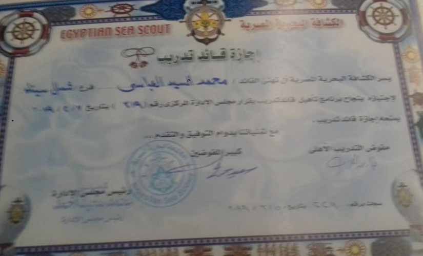 وأكد الدكتور خليل ابراهيم خليل رئيس فرع الكشافة البحرية المصرية بشمال سيناء أنه تم منح كل منهما اجازة " قائد تدريب " ، وذلك بعد اجتيازهما بنجاح برنامج تأهيل قائد تدريب بقرار مجلس الادارة المركزى بمنحهما اجازة قائد تدريب .