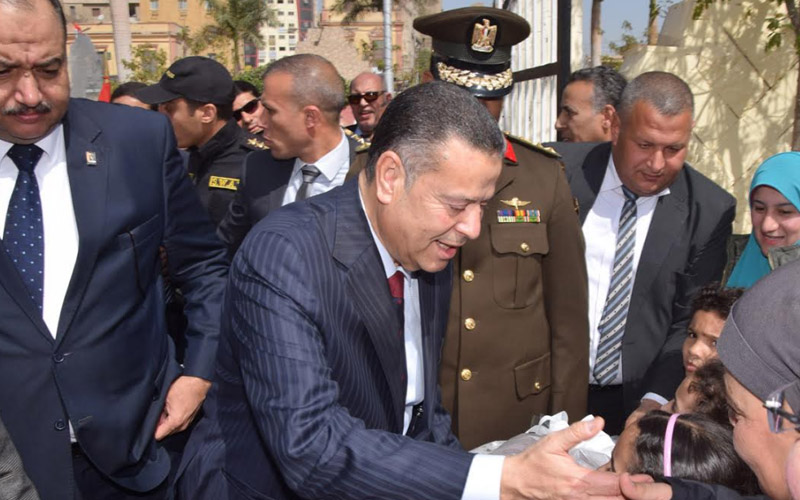محافظ بني سويف يضع الزهور على اللوحة التذكارية للشهداء