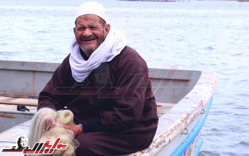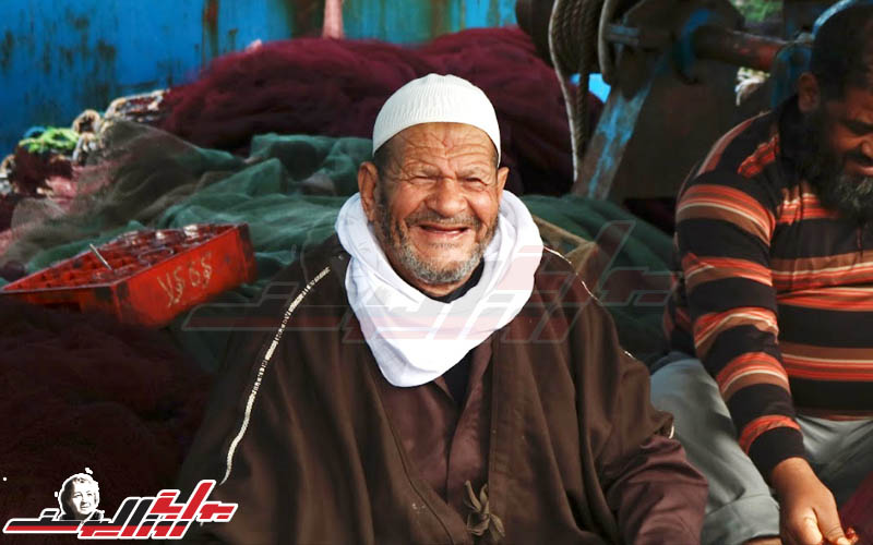 حفر الزمن سطورًا من حياته على وجهه، ومع ذلك لا تزال الابتسامة تشق الطريق بين تجاعيد العمر، فيترك بريق اعتزازه بقصته كصياد كهل وأب وجد قدوة لأحفاده وأبنائه.
