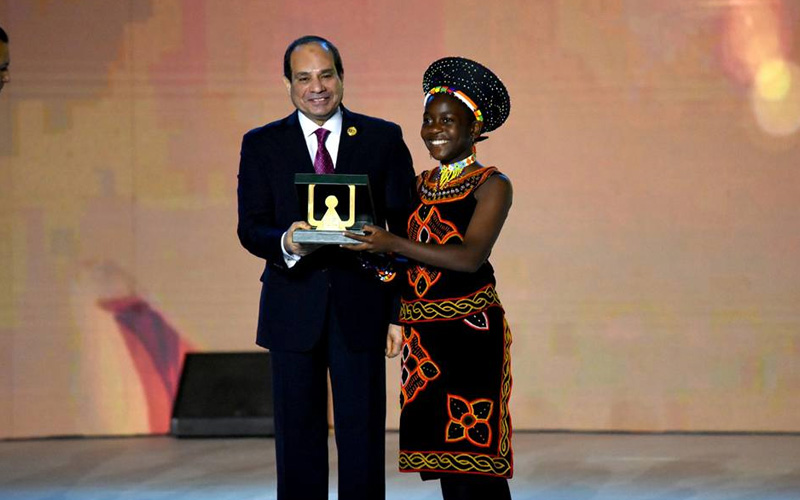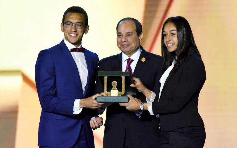 كرم الرئيس عبد الفتاح السيسي عددا من الشباب العرب والأفارقة خلال الجلسة الختامية لملتقى الشباب العربي والأفريقي بأسوان.