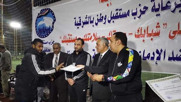 ومن جانبه، أكد الكابتن "جودة مصطفى" أمين مساعد قطاع الأعمال بمستقبل وطن بالشرقية، والمشرف على مبادرة "ابدأ" أن الحزب حرص على تكريم عدد من الشخصيات الرياضية المؤثرة، باعتبارها نموذج وقدوة يجب على الشباب الشرقاوي أن يحذو حذوهم، ويبتعد عن كل السبل التي قد تسوقه للانخراط في دروب الإدمان، جاء ذلك خلال تنظيم مباراة لكرة القدم جمعت مشاهير اللعبة بالمحافظة.