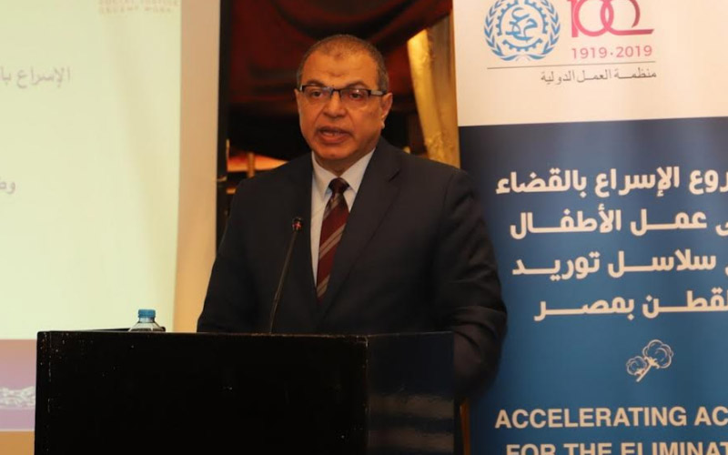 وأعرب الوزير عن تمنياته أن تؤتي ورشة العمل ثـمارها من خلال وضع تشخيص مبدئي للتحديات والحلول المناسبة حيال ظاهرة عمالة الأطفال في مصر، وتوعية أصحاب المصلحة المعنيين بدورهم في هذه القضية الشائكة، فضلا عن التعاون من كافة الجهات المشاركة للخروج بتوصيات فعالة تسهم في صياغة خطة واقعية وعملية يكون لها أثر إيجابي على أرض الواقع في مواجهة تلك المشكلة بقطاع زراعة القطن وصناعة المنسوجات والملابس الجاهزة بالدولة ،باعتبارها اللبنة الأولى في خارطة العمل في هذا المشروع .