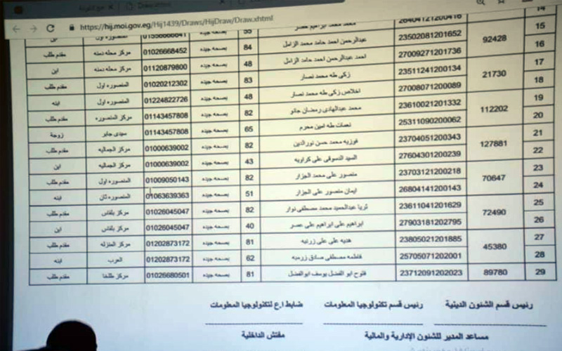 شهد الدكتور كمال شاروبيم، محافظ الدقهلية، واللواء محمد حجي، مدير أمن الدقهلية، والشيخ طه زيادة، وكيل وزارة الأوقاف، القرعة العلنية لحج وزارة الداخلية هذا العام.