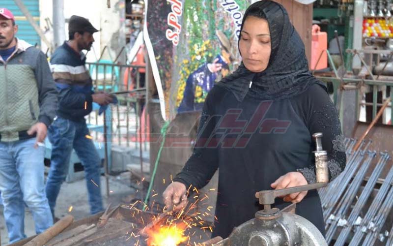لم تهب "بوسي" شرارة النيران التي تتطاير في وجهها، واعتمدت على يدها وقوتها في تشكيل وتصنيع الحديد، وزاحمت مهنة اقتصرت على الرجال، لتصبح أول حدادة بمدينة المنصورة.