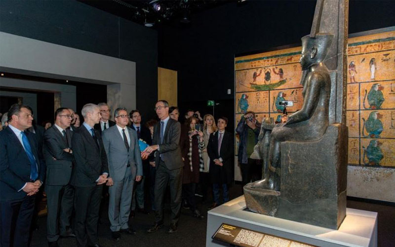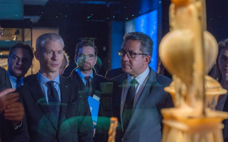 وخلال الجولة قام مدير القسم المصري بمتحف اللوفر بالشرح للوزيران وابدى الوزير الفرنسي اعجابة الشديد بالمعرض و القطع المعروضة به، وطريقة عرضها، ووصف المعرض بانه يعكس مستوي التعاون المشترك القائم بين مصر و فرنسا و بخاصة في مختلف المجالات الثقافية و الاثرية.