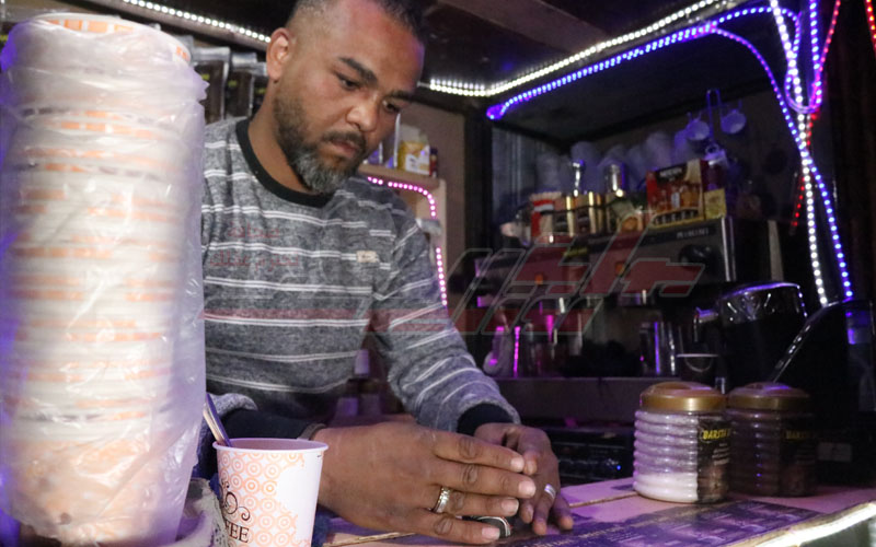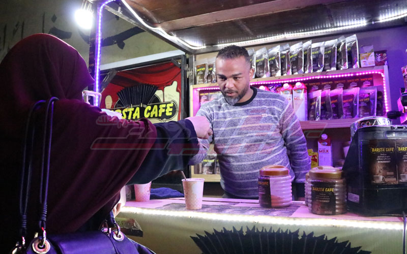 نقطة ضوء داخل ظلام دامس في أحد مواقف السيارات إنشاء قطعة من الصفيح المربع مقاسها لا يتعدى متر، وخمسون سم، يقف غزالة على قدميه منذ الصباح الباكر لبيع المشروبات الساخنة، مشروع صغير لبداية جديدة.