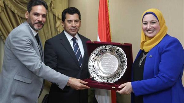 وخلال اللقاء، قدمت إيمان حسن وتامر فكري درع الدورة العربية المدرسية رقم 19 والتي أقيمت بمصر خلال الفترة من 2 إلى 13 مارس الجاري بمشاركة 350 لاعبا يمثلون 8 دول عربية في لُعبتي كرة اليد وتنس الطاولة