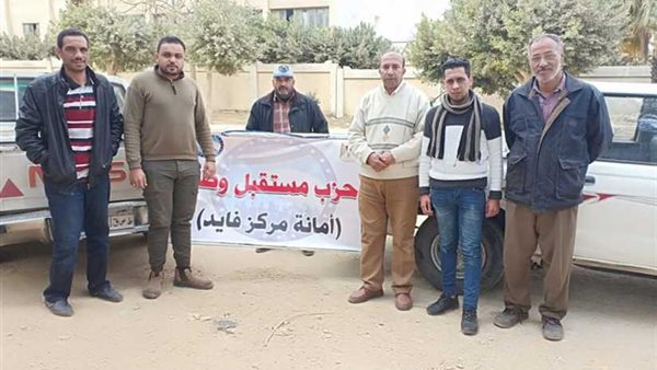 وبالتنسيق مع الدكتور سعيد السقعان وكيل وزارة الصحة بالإسماعيلية، نظم حزب مستقبل وطن قافلة بيطرية "منطقة فنارة" التابعة لمركز ومدينة فايد، والتي قدمت خدمات بيطرية متكاملة من كشوفات وترقيم وعلاج وتطعيم.
