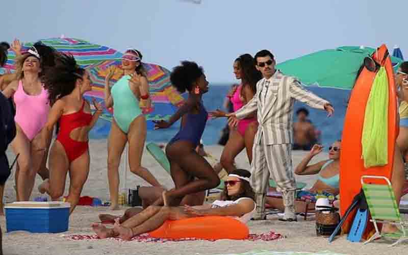 وبعد أن قدم المغني وفرقته الموسيقية عروضًا على الشاطئ وسط حضور كثيف للنساء وهن يرقصن بملابس السباحة الملونة، وظهرت نجمة فيلم "عنقاء الظلام" في أبهى صورها، حيث ارتدت قميص فرقة AC / DC فوق شورت جان الجينز الضيق.