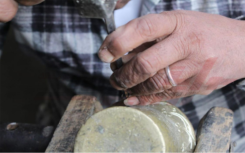 احترف عم جمال بمنطقة النحاسين في القاهرة الفاطمية مهنة نحت النحاس منذ طولته في سن السابعة من عمره.