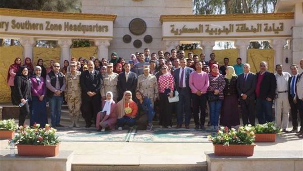 جاء ذلك خلال زيارته إلى المنطقة الجنوبية العسكرية وكان في استقباله اللواء أركان حرب أيمن نعيم رئيس أركان المنطقة الجنوبية العسكرية، وذلك بحضور الدكتورة مديحة حسنى عميد كلية الطب البيطري، والدكتور وجدي نخلة عميد كلية التربية النوعية والدكتور محمد ثابت بداري عميد كلية الفنون الجميلة، إلى جانب عدد من أعضاء هيئة التدريس من مختلف الكليات، والأستاذ عز المنصوري مدير عام إدارة رعاية الشباب، والأستاذ أحمد شريت مدير إدارة الاتحادات الطلابية، وبمشاركة 45 طالبا وطالبة من طلاب الجامعة.