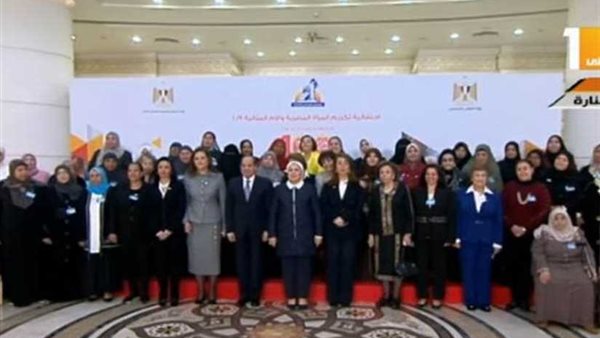 التقط الرئيس عبد الفتاح السيسي، وقرينته، صوراً تذكارية مع عدداً من الوزيرات والأمهات المثاليات المقرر تكريمهن خلال احتفالية المجلس القومي للمرأة.