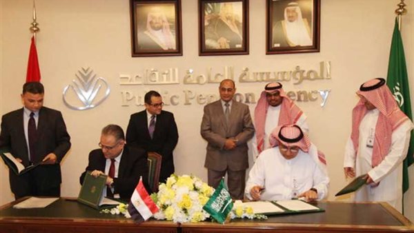 وكان الوفد المصري المكون من المستشار أحمد الشحات المستشار القانوني لوزارة التضامن الاجتماعي ومحمد سعودي، رئيس صندوق التأمين الاجتماعي للعاملين بالقطاع الحكومي ومحسن الطنطاوي، رئيس الإدارة المركزية للخدمات التأمينية بالصندوق الحكومي قد وصل إلى الرياض، أمس، تلبية لدعوة محمد بن طلال النحاس محافظ المؤسسة العامة للتقاعد السعودية، للتوقيع على مذكرة التفاهم المشتركة بين البلدين.