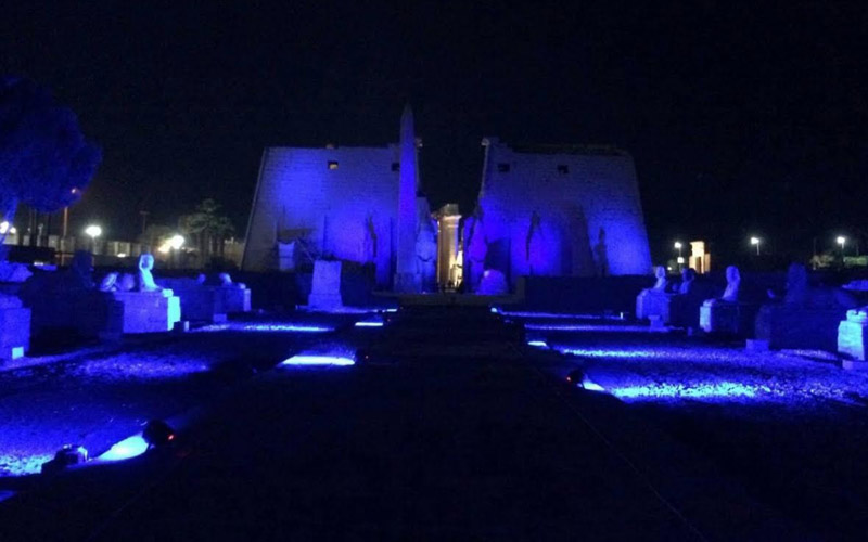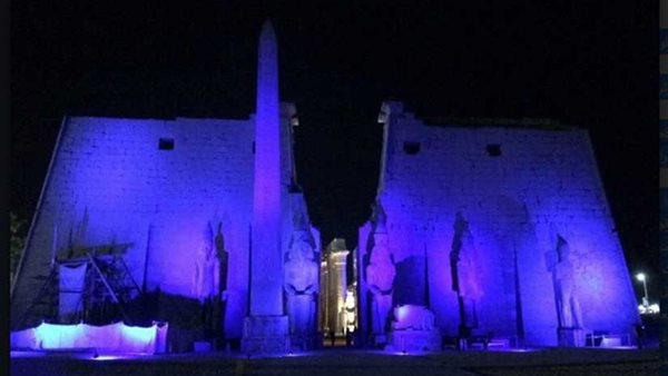 بإضاءة المعابد باللون الأزرق.. الأقصر تشارك العالم في الاحتفال يوم التوحد (صور)
