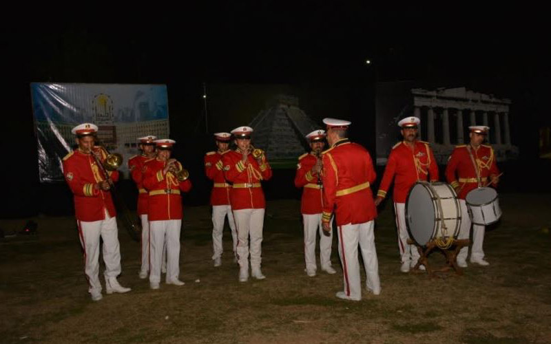 وأوضح نائب رئيس جامعة أسيوط أن الحفل تم إطلاقه بعزف موسيقى من فرقة الموسيقى العسكرية بالمنطقة الجنوبية ثم عرض الصوت والضوء الذي تضمن تصميم مجسمات للدكتور محمد عبد الحكم وكيل كلية الفنون، والدكتور محسن سليم والدكتور حسام جلال أساتذة النحت بالجامعة وإخراج الدكتور أحمد شريت مدير إدارة الاتحادات الطلابية وكتابة وإلقاء الدكتور شحاتة غريب نائب رئيس الجامعة والأستاذ عز الدين المنصوري مدير عام رعاية الشباب.