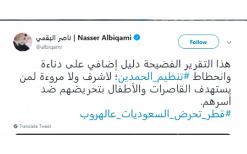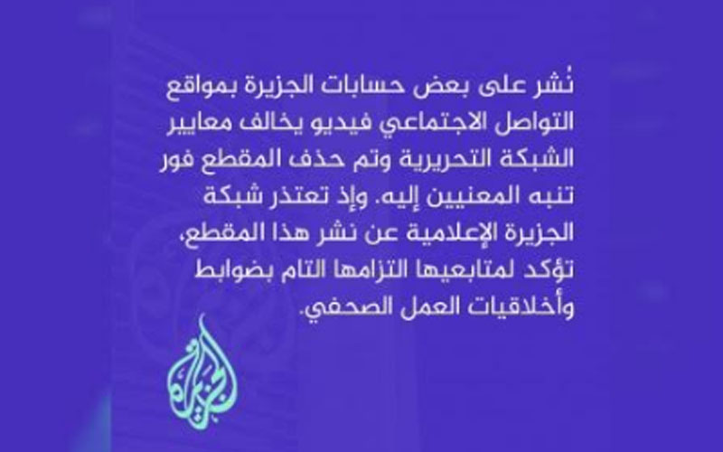 وكان رواد مواقع التواصل الاجتماعة هاشتاج يرفض الفيديو الذى بثته الجزيرة لأنه مخالف لكل المواثيق الصحفية والمهنية والأخلاقية العالمية، ويرفضها الشعب القطري، قبل أى شعب أخر لذلك تصدر الهاشتاج أكثر الكلمات المتداولة على تويتر داخل "قطر".