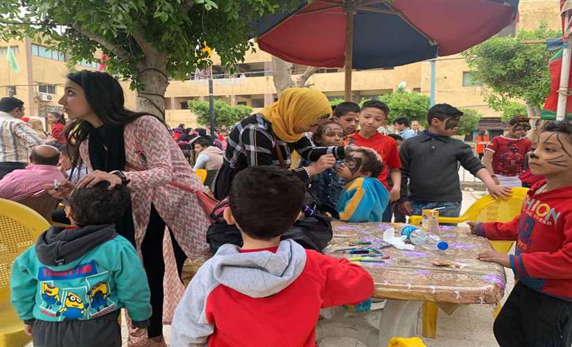كما استمتع الأطفال بالألعاب المختلفة ووسائل الترفيه بالحديقة، والرسم على وجوههم بأشكال مختلفة.