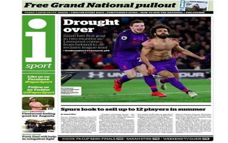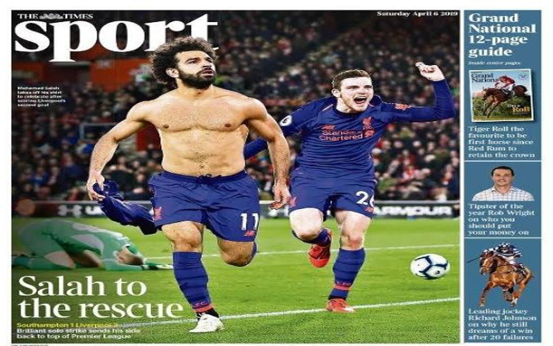 صحيفة "التايمز"، فكتبت "إنقاذ صلاح.. هدف فردي رائع يرسل ليفربول إلى قمة الدوري الإنجليزي"، بينما كتبت صحيفة " I SPORT": "الجفاف انتهى".
