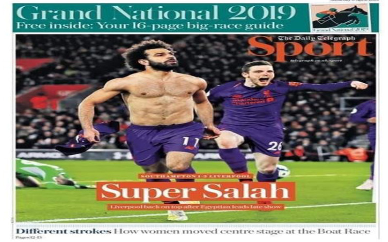 صحيفة "التليجراف" التي عنونت "صلاح السوبر يقود ليفربول لصدارة الدوري الإنجليزي"، وأضافت الصحيفة: "ليفربول يعود للقمة بعدما قاد المصري العرض المتأخر".
