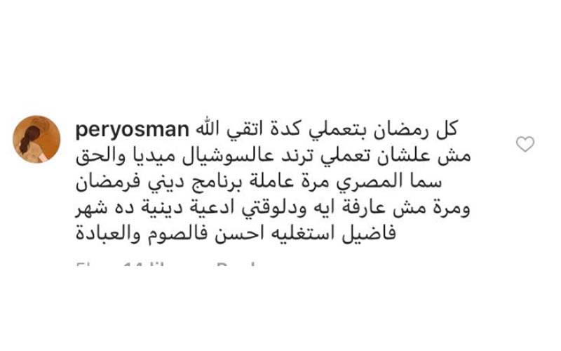 آخر تقاليع واشتغالات "سما المصري" للشهر المبارك ظهورها بـ"لوك" ديني، وهي ترتدي الحجاب، وقامت بنشر "صور وفيديو"، على صفحتها الشخصية بموقع التواصل الاجتماعي "إنستجرام"، وقالت إنها بروفات لأدعية لشهر رمضان، وأكدت أن الفيديو موجود كاملاً على موقعها بـ"اليوتيوب"، موضحة أنها تتقبل النقد.