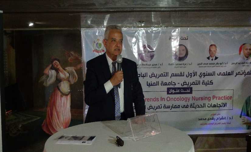 مشيدًا بكلية التمريض وأعضاء هيئة التدريس بها وبقسم التمريض الباطني والجراحي، متمنيًا أن يخرج المؤتمر بتوصيات يمكن تطبيقها في مجال تمريض الأورام.