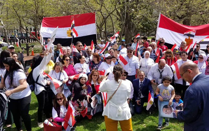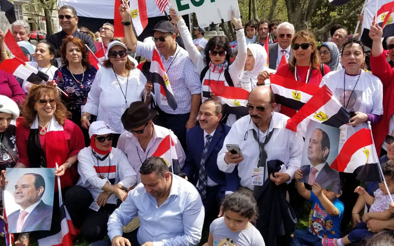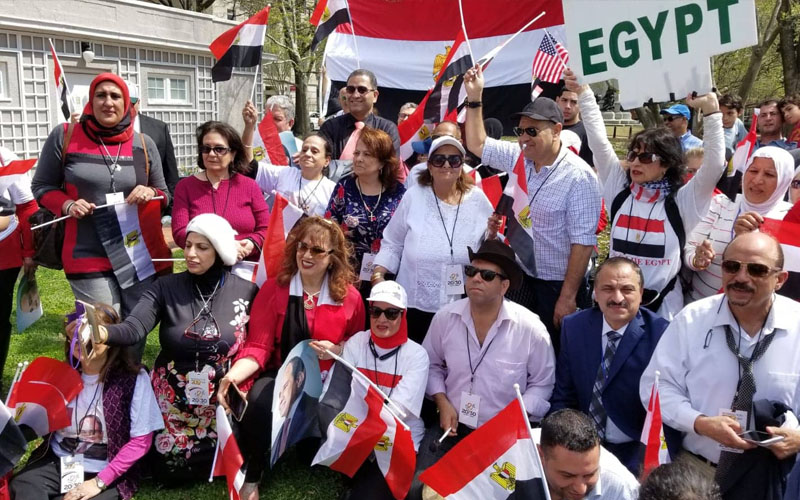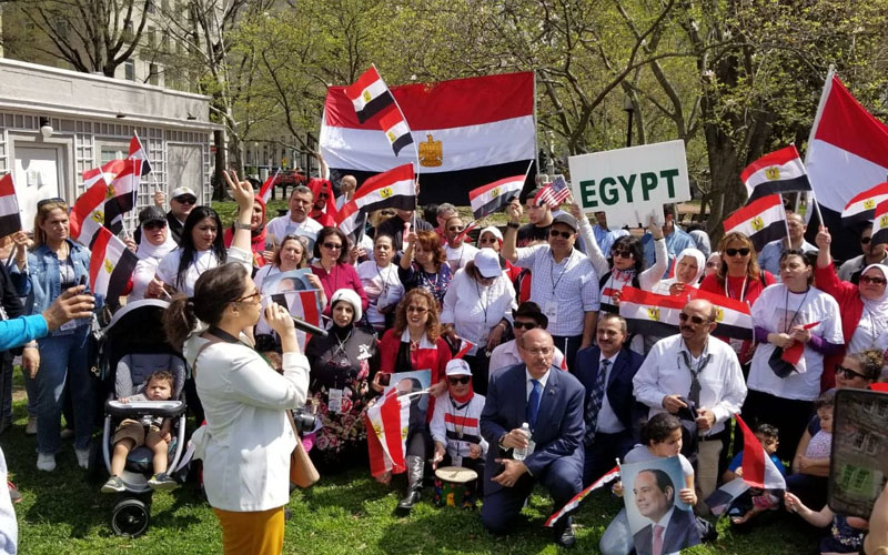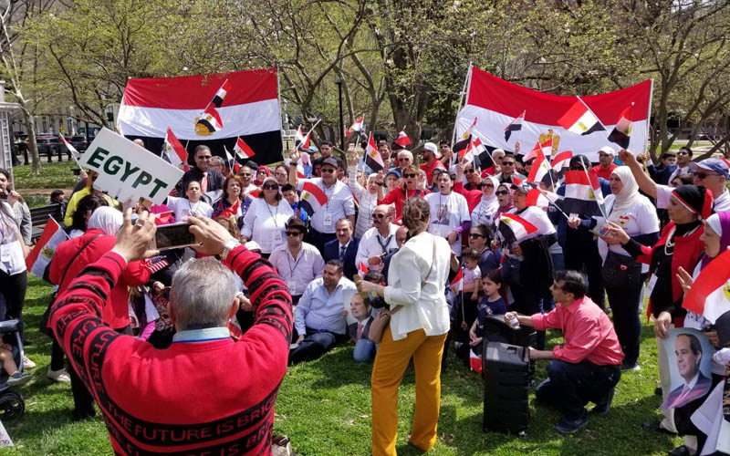 الجالية المصرية تحتشد أمام البيت الأبيض للترحيب بالرئيس السيسي